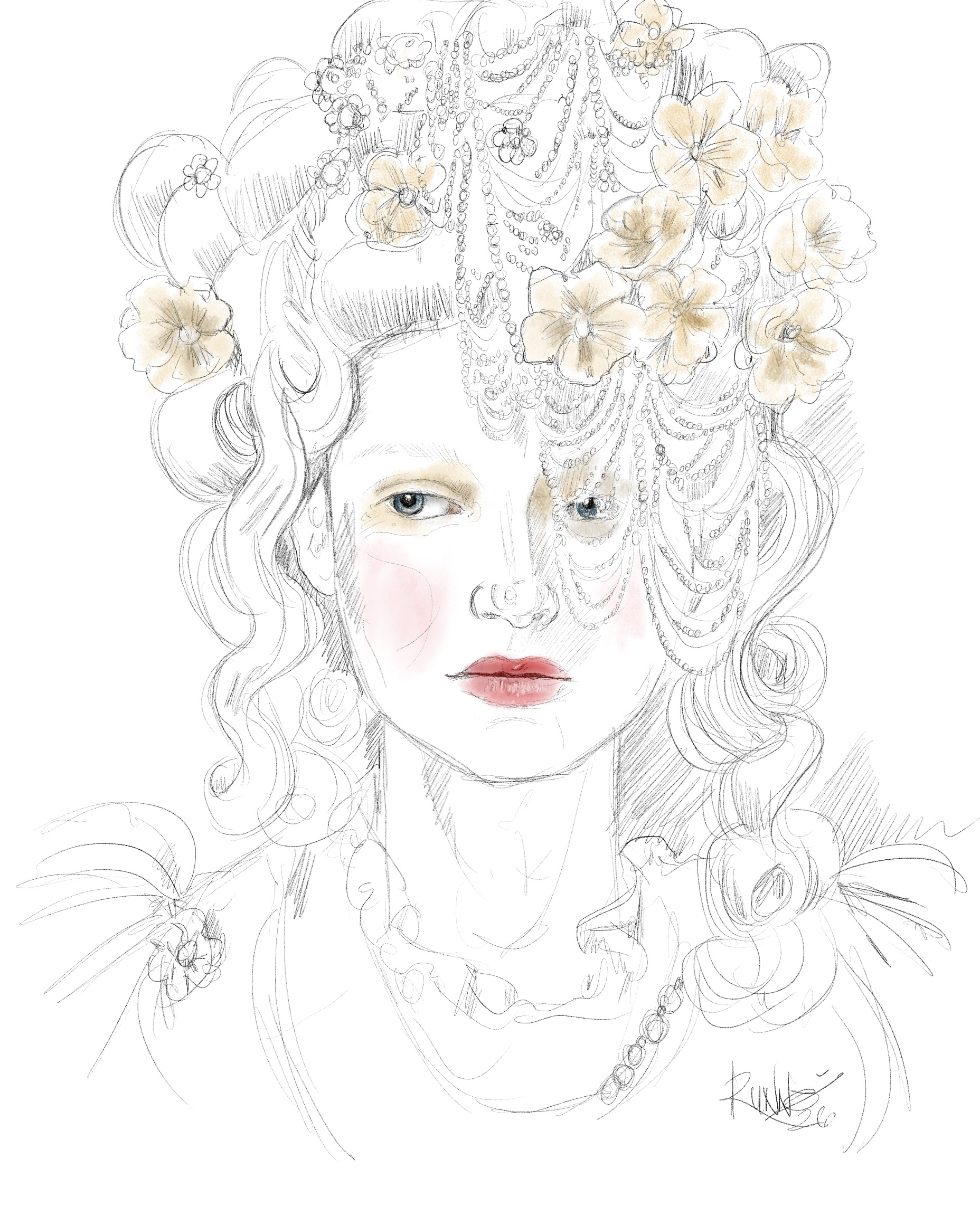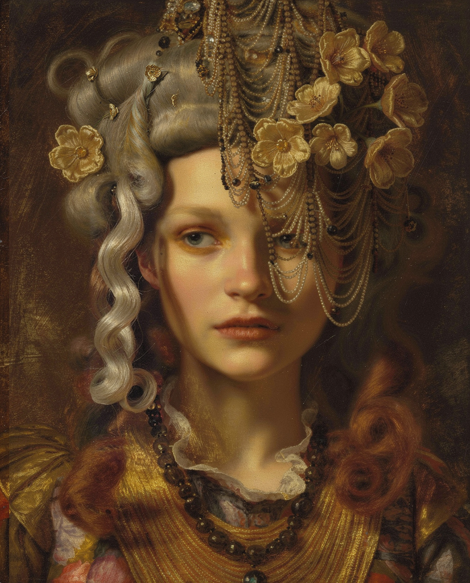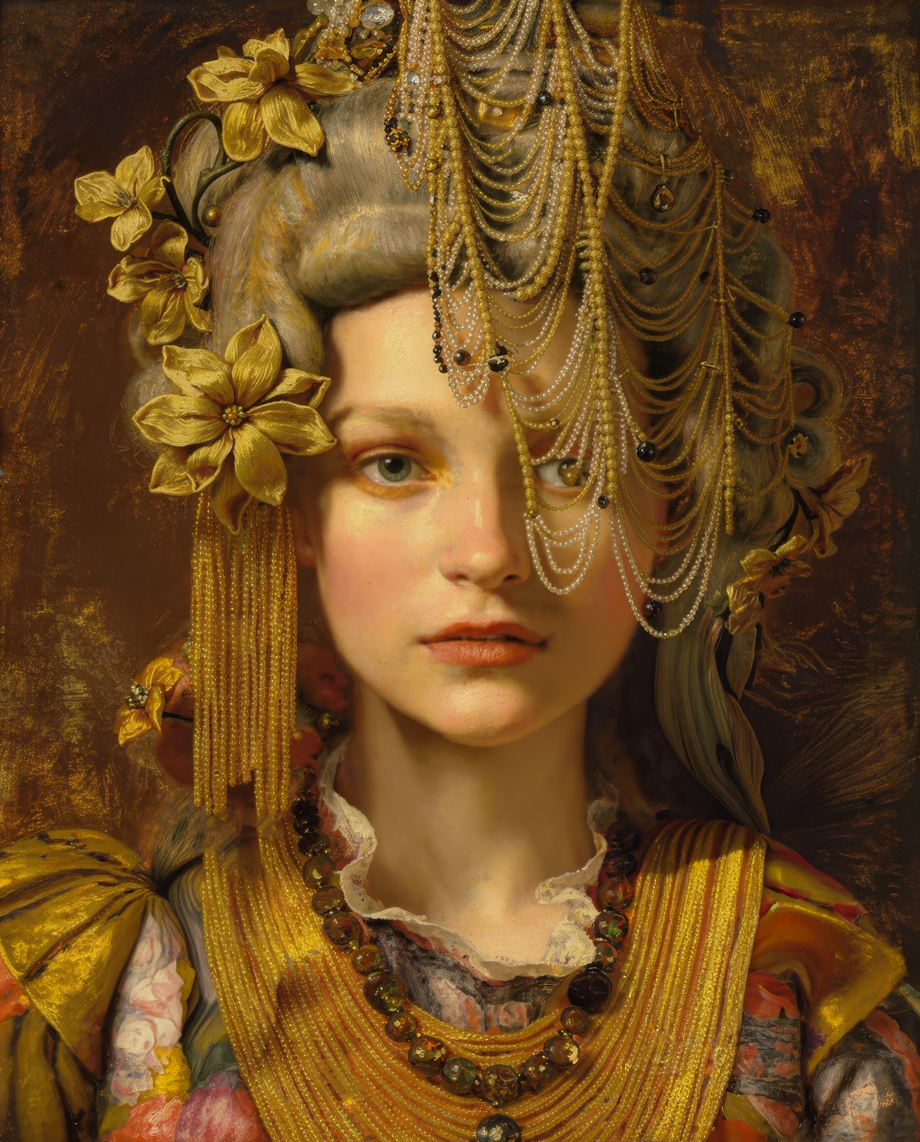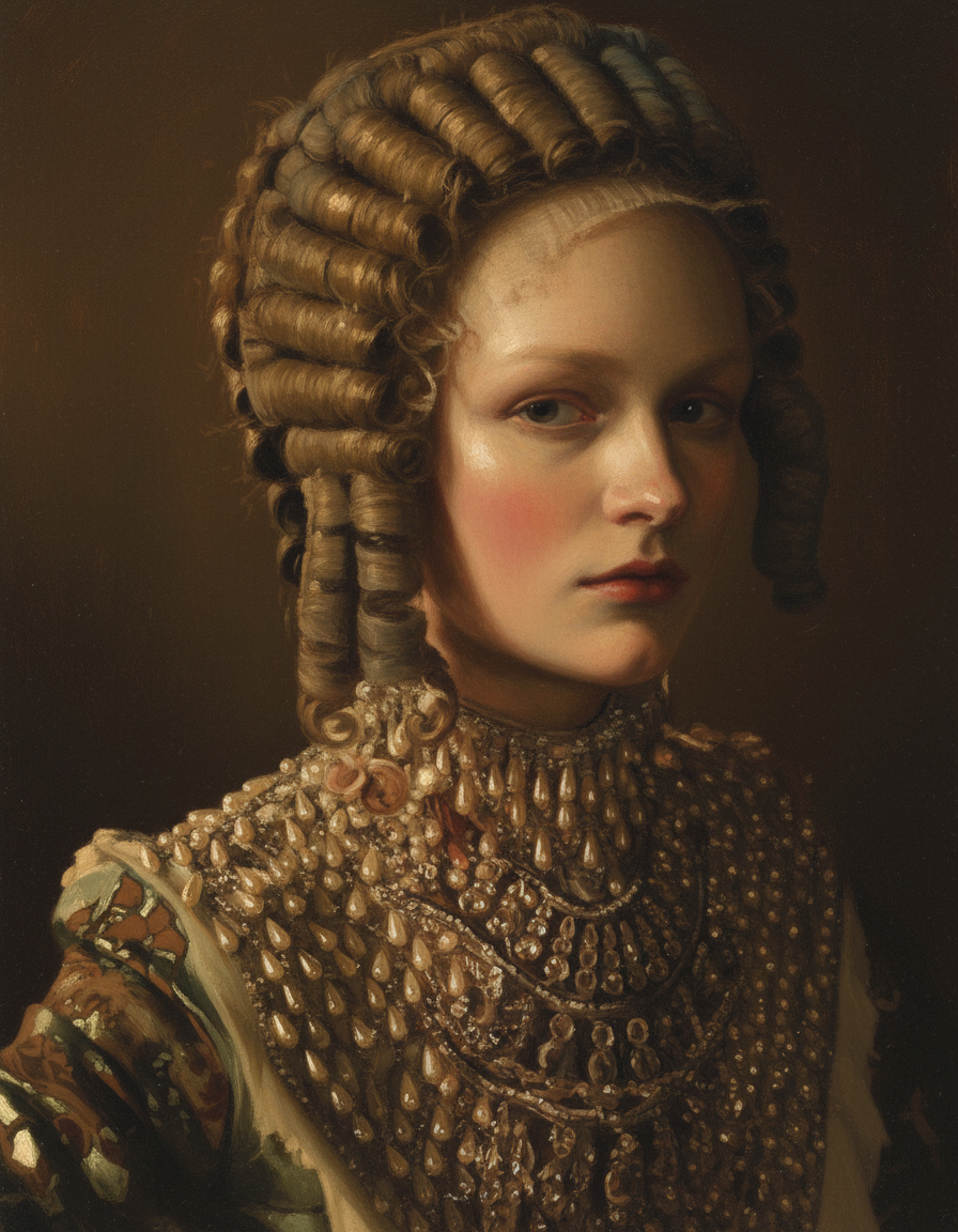 This project explores a contemporary reinterpretation of 17th-century Golden Age portraiture, beginning with a hand-drawn digital sketch and evolving into a painterly final rendering. Inspired by classical composition, chiaroscuro, and ornamental detail, the work reimagines a modern fashion photograph—originally styled and art-directed by the artist—through a historical visual language. The transformation emphasizes authorship, atmosphere, and restraint, allowing traditional aesthetics to surface through contemporary execution.